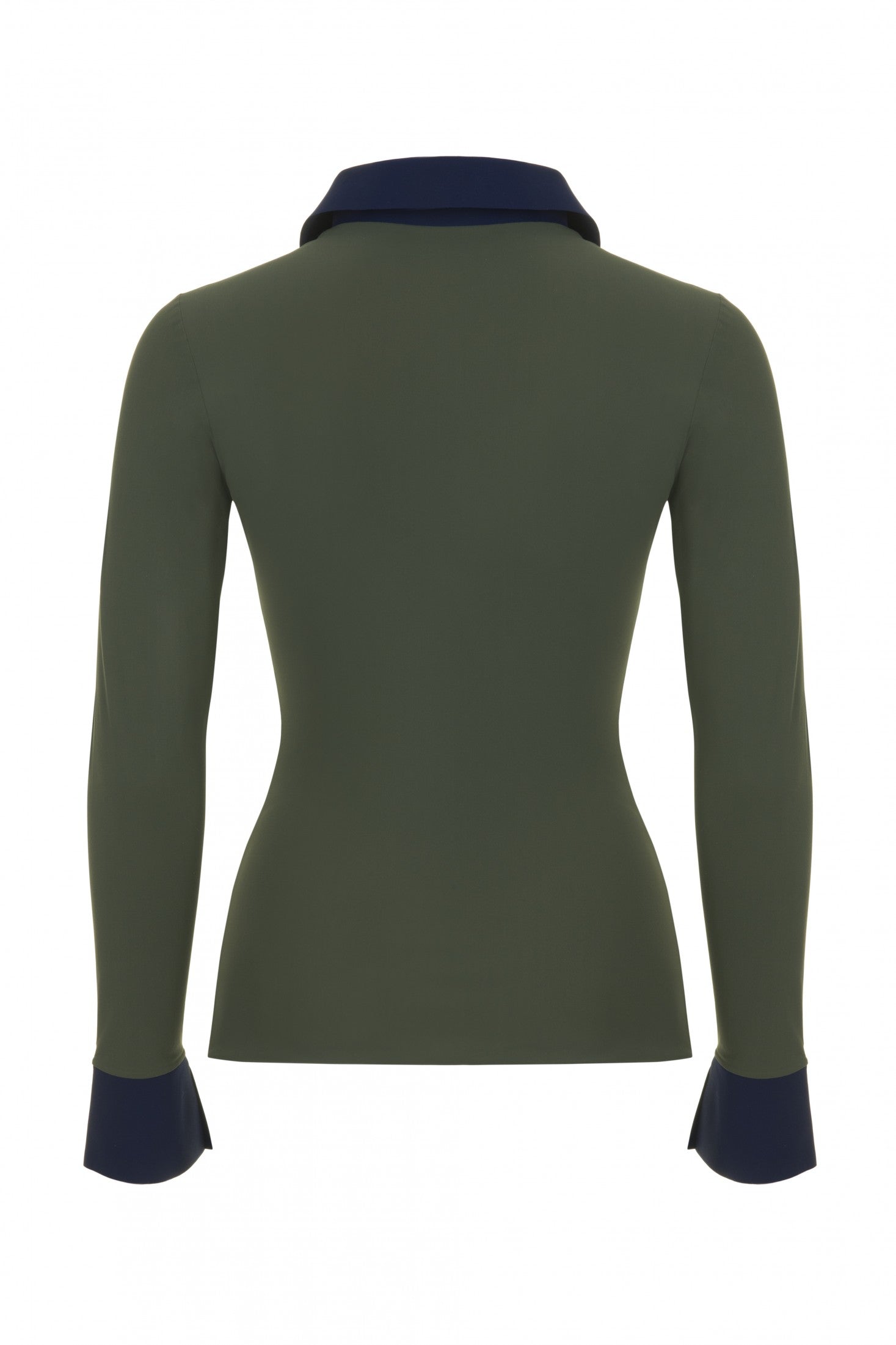 This top is a timeless chic wardrobe essential with contrast collar and cuffs. Easy to mix and match with our trousers and skirts as an outfit centrepiece or a layering element. It can also easily adapt to your existing wardrobe and be worn as an elegant top, as a layering piece underneath a jacket or a cardigan or as a casual top with jeans. Made without a single piece of thread, the smooth bonded seams and lightweight breathable fabric make it extremely comfortable. Without any zips, buttons or labels. The ultimate travel essential as it packs very small and doesn't crease. If packed for prolonged time some creasing will occur but it relaxes with body heat. Machine washable and no iron. Doesn't fade, lint or lose shape wash after wash. No more expensive dry cleaning bills! Made in Italy with ultrasonic and thermal bonding technologies for smooth, stitchless finish. Made with our signature eco-certified carbon neutral Italian fabric that feels smooth on the skin, is hypoallergenic, breathable and provides UV protection. All the fabrics we use are comfortable, durable, made with non toxic dies in a water saving, non polluting process endorsed by WWF.Â