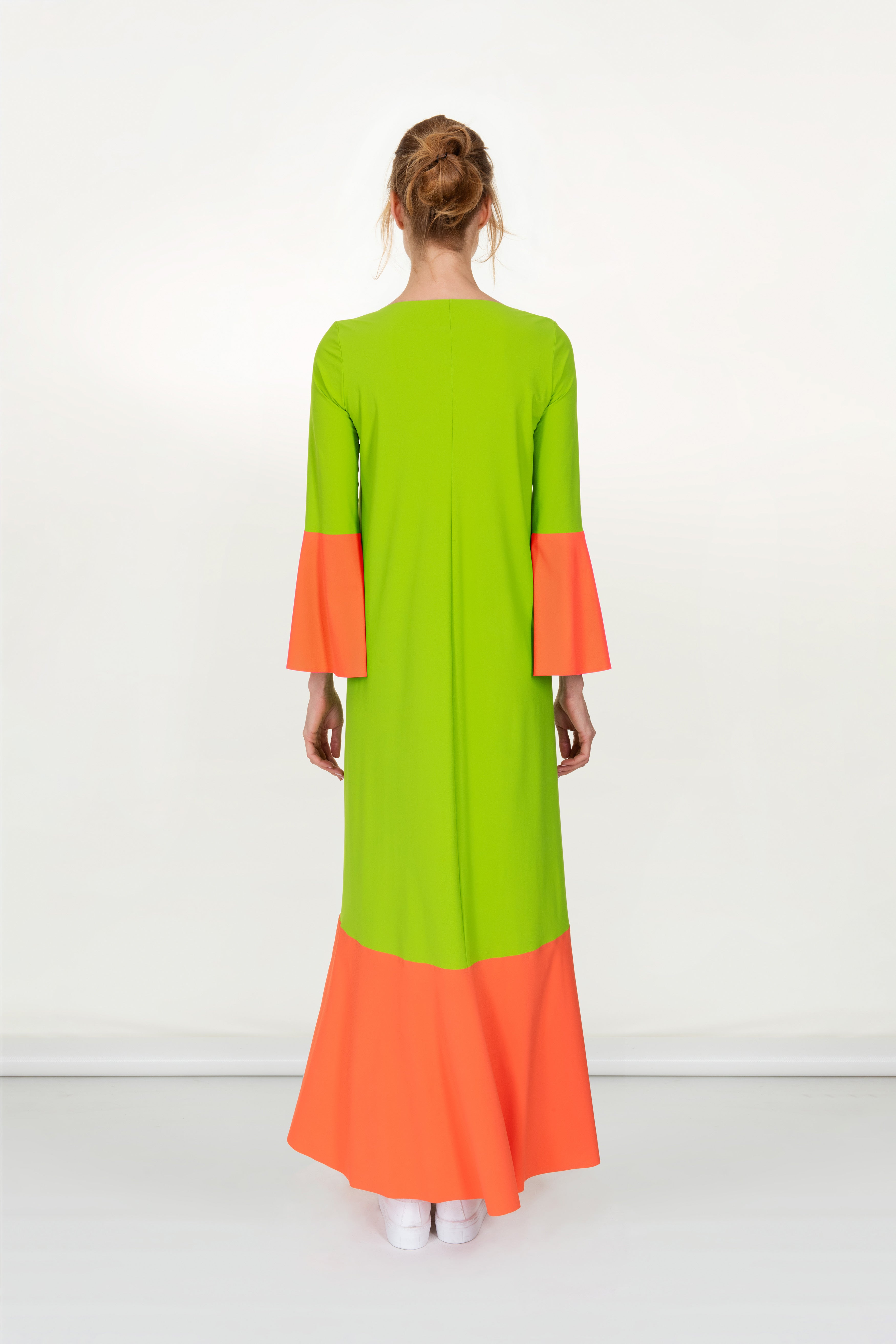 This long kaftan style dress is ultimate in versatility: it can be dressed up or down, worn with flip flops for the summer day look or with a great piece of jewellery and sandals for an evening look. It is as suitable for a beach holiday as for wearing in the city, where it can be worn with a cardigan or a shawl. Without any buttons, zips or labels. The ultimate travel essential as it packs small and doesn't crease. If packed for prolonged time some creasing will occur but it relaxes with body heat. Machine washable and no iron. Doesn't fade, lint or lose shape wash after wash. No more expensive dry cleaning bills! Made in Italy with ultrasonic and thermal bonding technologies for smooth, stitchless finish. Made with our signature eco-certified carbon neutral Italian fabric that feels smooth and silky on the skin, is hypoallergenic, breathable and provides UV protection. All the fabrics we use are comfortable, durable, made with non toxic dies in a water saving, non polluting process endorsed by WWF.
