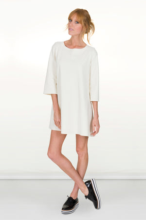 This A line dress/tunic is a versatile feminine piece to be dressed up or down and combined with just about anything from opaque tights, high boots, sandals, trousers or leggings, it can be worn with a statement jewellery piece for a glamorous look as successfully as with jeans or flip flops. No zips buttons or labels. Machine washable and no iron. Stitchless and made with our signature eco-certified Italian fabric that is hypoallergenic and provides UV protection.