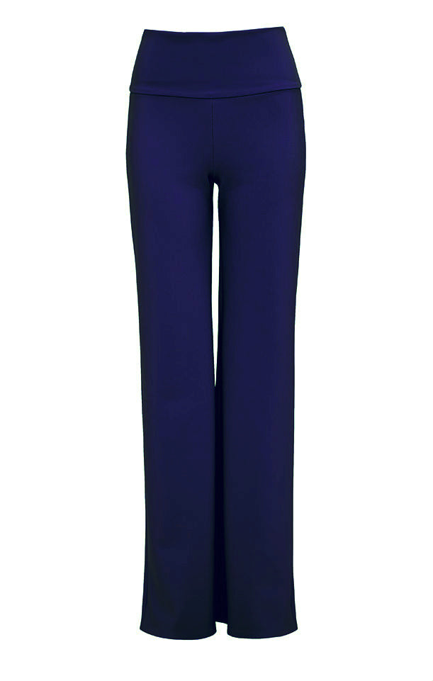 This versatile tuxedo style trouser is all you need for a variety of looks. The versatility and comfort will take you from casual to everyday elegance to evening out just with a change of shoes and a top. Chic with a slimming tuxedo style side panel. Contrast black side panel in navy and violet variations. The double waist provides a great hold. Our signature fabric smoothes all imperfections, feels as comfortable as yoga pants and has a tailored look.Â