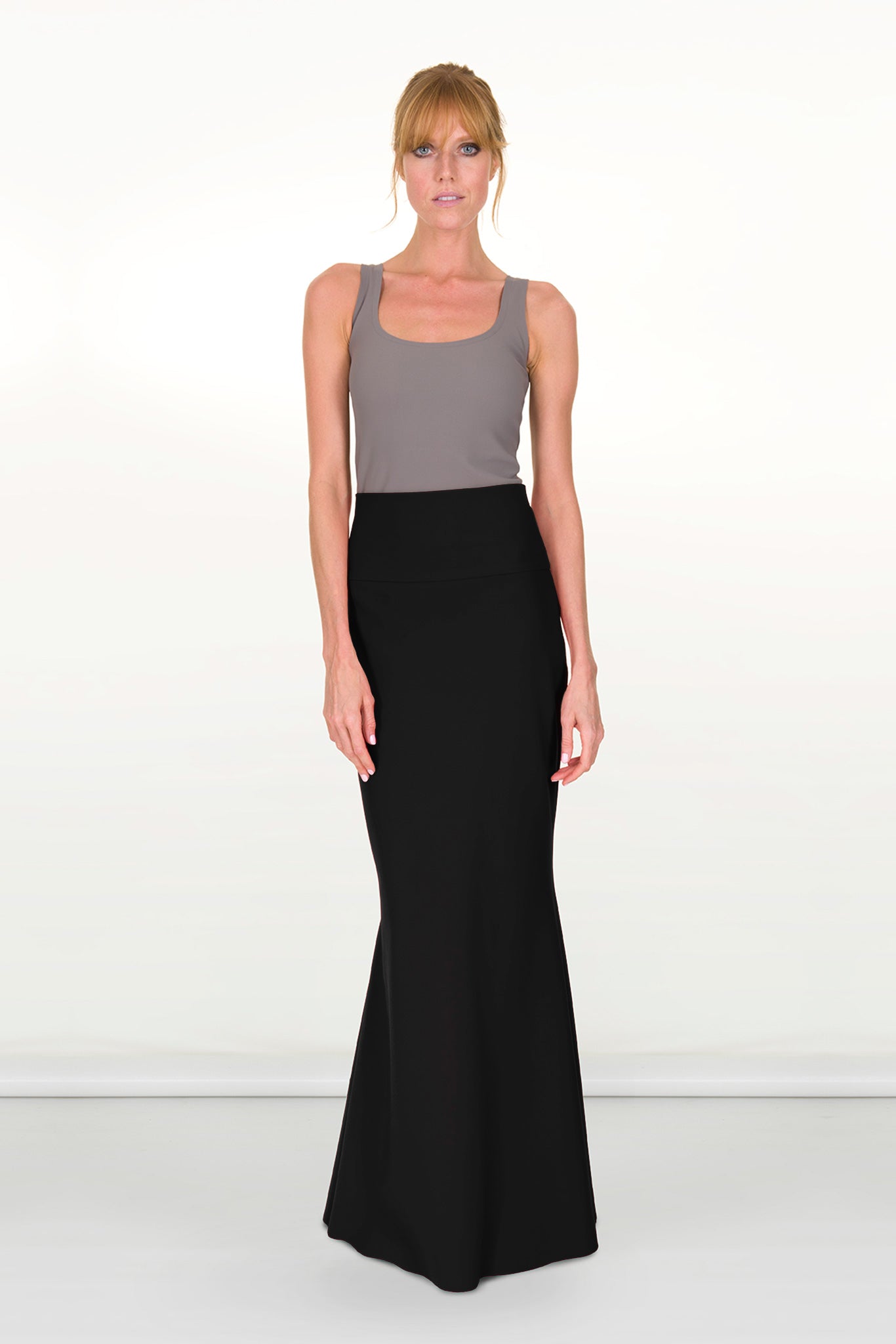 This full length skirt is flattering due to the double waist and our signature sculpting fabric that smoothes all imperfections. The extra support waist sculpts the figure comfortably. It is the perfect piece for evening wear or day elegance. It can be worn with any elegant top for an evening look, it can be styled with any silk organza shirt or any embellished top. It also looks great with a cotton T-Shirt or a shirt for a relaxed yet chic day look and can be worn both with high heels or flats, even trainers as styled in our lookbook. Without any zips, buttons or labels. The ultimate travel essential as it packs very small and doesn't crease. If packed for prolonged time some creasing will occur but it relaxes with body heat. Machine washable and no iron. Doesn't fade, lint or lose shape wash after wash. No more expensive dry cleaning bills! Made in Italy with ultrasonic and thermal bonding technologies for smooth, stitchless finish. Made with our signature eco-certified carbon neutral Italian fabric that feels smooth on the skin, is hypoallergenic, breathable and provides UV protection. All the fabrics we use are comfortable, durable, made with non toxic dies in a water saving, non polluting process endorsed by WWF.