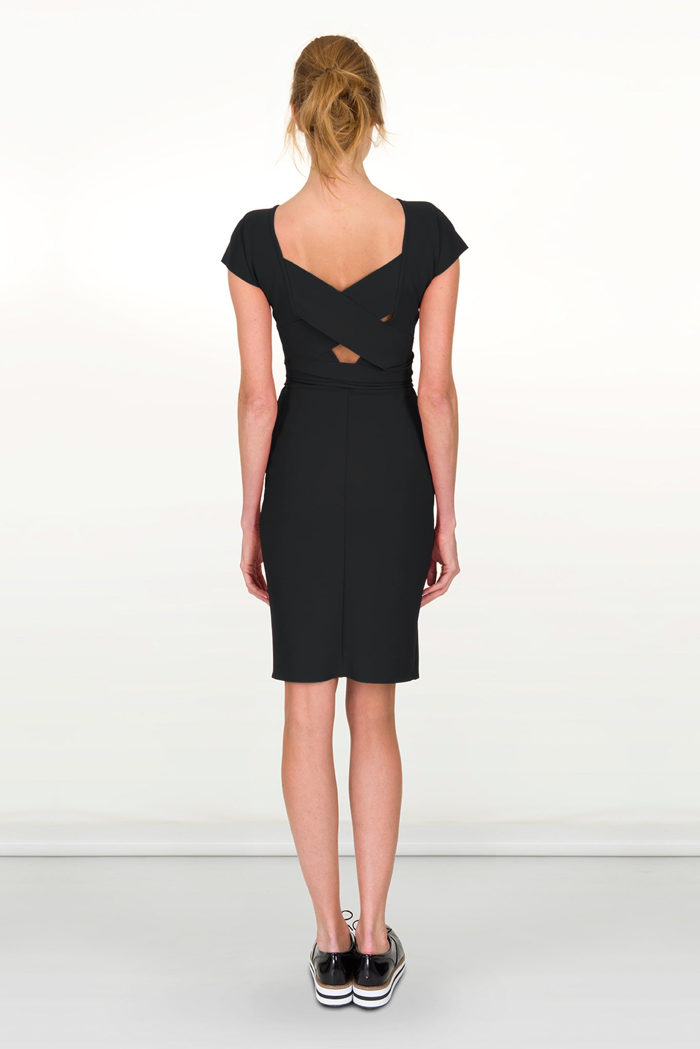 Dana is 6 dresses in one - tie in the front or back, in a simple knot or a feminine bow, keep the ties long or short and experiment with the ways that will flatter your figure best or reflect your mood of the day. Our breathable fabric makes it a perfect year-round dress and the sashes help achieve the perfect silhouette. This versatile dress delivers comfort and practicality. It has an internal support so it can be worn without a bra and also the sashes can be tied in a way to conceal the bra. It sculpts the figure comfortably and can be dressed up or down with flat shoes or heels. Step in and pull up.Â