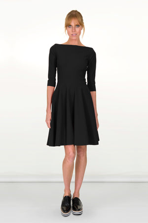 This flared dress has a beautiful feminine line with straight neckline, giving the ultimate figure without being revealing. It combines comfort and practicality being adaptable for any dress code and will maintain an impeccable creaseless look at all times. The ultimate travel essential as it packs small and doesn't crease. If packed for prolonged time some creasing will occur but it relaxes with body heat. Machine washable and no iron. Doesn't fade, lint or lose shape wash after wash. No more expensive dry cleaning bills! Made in Italy with ultrasonic and thermal bonding technologies for smooth, stitchless finish. Made with our signature eco-certified carbon neutral Italian fabric that feels smooth and silky on the skin, is hypoallergenic, breathable and provides UV protection. All the fabrics we use are comfortable, durable, made with non toxic dies in a water saving, non polluting process endorsed by WWF.