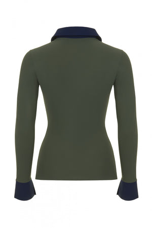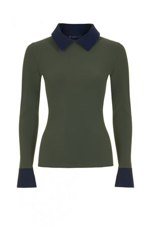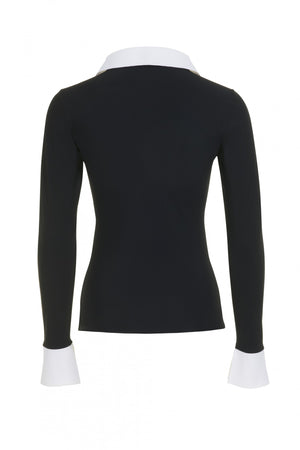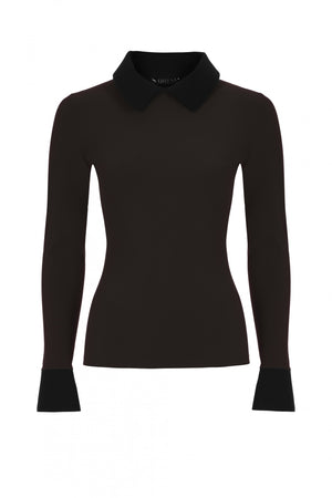 This top is a timeless chic wardrobe essential with contrast collar and cuffs. Easy to mix and match with our trousers and skirts as an outfit centrepiece or a layering element. It can also easily adapt to your existing wardrobe and be worn as an elegant top, as a layering piece underneath a jacket or a cardigan or as a casual top with jeans. Made without a single piece of thread, the smooth bonded seams and lightweight breathable fabric make it extremely comfortable. Without any zips, buttons or labels. The ultimate travel essential as it packs very small and doesn't crease. If packed for prolonged time some creasing will occur but it relaxes with body heat. Machine washable and no iron. Doesn't fade, lint or lose shape wash after wash. No more expensive dry cleaning bills! Made in Italy with ultrasonic and thermal bonding technologies for smooth, stitchless finish. Made with our signature eco-certified carbon neutral Italian fabric that feels smooth on the skin, is hypoallergenic, breathable and provides UV protection. All the fabrics we use are comfortable, durable, made with non toxic dies in a water saving, non polluting process endorsed by WWF.Â