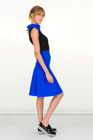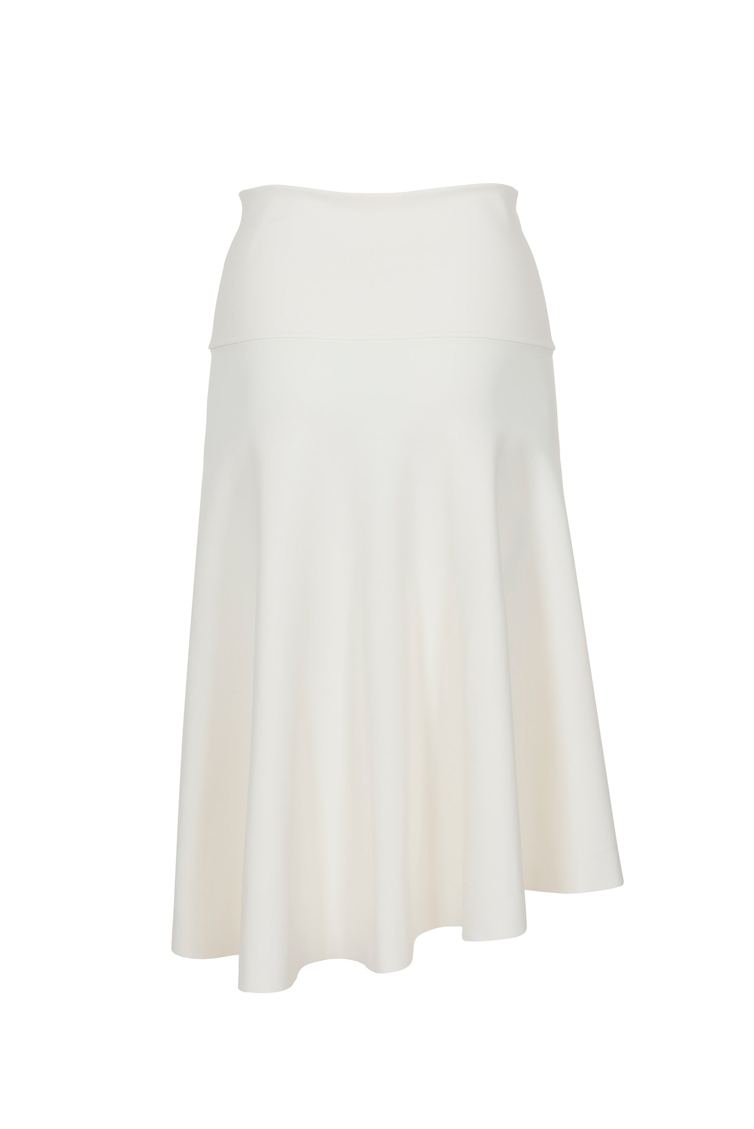 This reversible skirt with asymmetrical hemline is a must have in every woman's wardrobe. It is the perfect piece for evening wear, day elegance or casual look to be worn with high heels or flats. It can be worn higher on the waist for a shorter look or lower on the hips for a longer hemline. Wear it on the side of the overlapping side detail or the smooth bonded seam side.